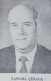 Vangjel Çërrava (born 1941) is an Albanian politician of the Albanian Party of Labour (PPSh). He was member of the Albanian Parliament, Deputy Chairman of the Cabinet of Albania, and for a short time member of the Politburo of the Party.