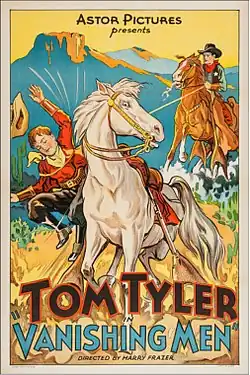 Vanishing Men is a 1932 American western film directed by Harry L. Fraser and starring Tom Tyler, Adele Lacy, and Raymond Keane. The film depicts the story of Russ Whitely (Keane), a young man who has become involved with cattle rustling, his complicated relationship with Sheriff Doug Barrett (Tyler), and his eventual redemption. Critical reception to the film was mixed, and it is now believed to be a lost film.