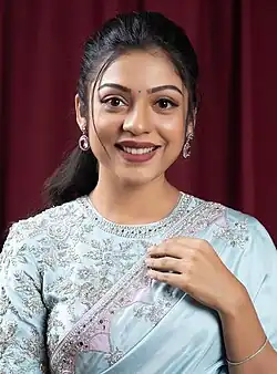Varsha Bollamma is an Indian actress who predominantly works in Tamil and Telugu films. She made her acting debut with the Tamil film Sathuran (2015). Varsha's notable films include Yaanum Theeyavan (2017), '96 (2018), Bigil (2019), Middle Class Melodies (2020) and Ooru Peru Bhairavakona (2024). Bigil remains her highest grossing release.[1]