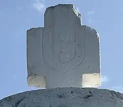 The pillar is depicted on a chart of the Leopard Bank (south of Malindi) drawn in November 1823.[14] This was drawn by a British Admiralty survey team led by Captain William Fitzwilliam Owen. Owen described the promontory on which the pillar stood as 'perfectly flat at the top, and elevated above the sea about twelve feet. If ever there existed an inscription upon this pillar it is totally obliterated, as not a line can now be traced; but the marble cross on its summit exhibits the arms of Portugal in full preservation.'[15] The padrão depicted on Owen's chart was similar in appearance to the modern pillar.[16] This suggests that the original padrão had been strengthened at some earlier time.
