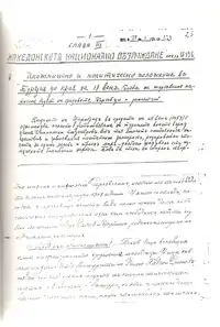 In 1934 Ivanovski wrote an article under the name "Why we Macedonians are a separate nation" in the spirit of Stalin's theory of the nation he argued for the existence of a Macedonian nation and a Macedonian language. There Ivanovski declared many historical figures, including such from the Middle Ages, as ethnic Macedonians.[3] His article caused shock among the Bulgarian public and even among some members of the BCP and the IMRO (united).[4] Per him the Macedonian revivalists considered themselves subjectively as Bulgarians, but objectively, their activity followed an agenda of a creation of a distinct Macedonian nation. Within an extramural discussion in the press with some Bulgarian historians Ivanovski accused them of being “bourgeois". At the political trial in Sofia against IMRO (United) members in 1936, he was sentenced to 5 years in prison, but his sentence was reduced and he was released in 1939. During this period he was member of the Macedonian literary circle in Sofia. In 1941 he went underground and in 1942 he was arrested and sentenced to 15 years in prison. From 1943 he served his sentence in Idrizovo, Skopje region, then in Bulgaria. In prison, Ivanovski created his major work called The Macedonian Question in the Past and Today, which is an attempt to present "the history of the Macedonian people" from antiquity to the present through the prism of Marxist philosophy. With this work, he became the founder of the modern Macedonian historiography.[5]