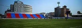 Previously, the stadium had a modest set of stands, with the two teams' locker rooms located beneath them. A VIP section was also positioned at the center, level with the two stands. Over time, the capacity of the stadium was increased to 15,000 spectators.[8]