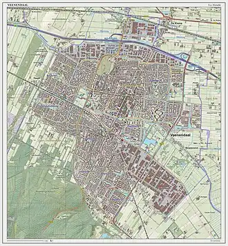 Veenendaal (Dutch pronunciation: [ˈveːnə(n)ˌdaːl] ⓘ) is a municipality and a town in central Netherlands, located in the province of Utrecht. Veenendaal is the only population centre within its administrative borders. The municipality had a population of 70,000 inhabitants on 8 August 2024 and covers an area of 19.72 km2 (7.61 sq mi).