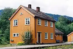 Veggli train station was on the Numedal Line. The line ran from Kongsberg to Rødberg in Nore og Uvdal. The line was officially opened in 1927. Passenger traffic on the track was closed in 1988. West from Veggli, the road goes over Vegglifjell where Veggli Lodge and Veggli Skisenter are located. Further the road leads to the villages of Austbygdi and Tessungdalen in Tinn.[3] [4]