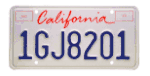 1982 | blue on reflective white with graphic Art Deco state name | The Golden State | 2ABC123 | 2AAA000 to 2GPZ999 | Extra-cost optional plate until 1987, when it briefly became the standard passenger base after the 1969 blue base was discontinued. Awarded "Plate of the Year" for best new license plate of 1983 by the Automobile License Plate Collectors Association, the first and, to date, only time California has been so honored. This plate design was seen in the opening credits of the television drama L.A. Law, which aired on NBC from 1986-94. The validation sticker corresponded to the year of each episode's air date. |