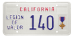 Legion of Valor—Passenger | Blue on white | LEGION OF VALOR 123 | 001 to LEGION OF VALOR 279 (as of Dec 24, 2023)[23] | Sticker placed at right denoting the decoration held by the registrant: Medal of Honor (Army, Navy or Air Force), Distinguished Service Cross, Navy Cross, or Air Force Cross. | |