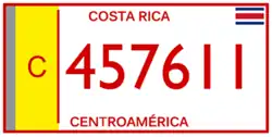 The vehicle registration plates of Costa Rica[1] have been issued since at least 1923. The current plate size is the North American standard of 6 in × 12 in (152 mm × 300 mm).[2]