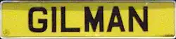 Each vehicle must display two registration plates: one at the front, and one at the rear of the vehicle. The front plate has black characters on a white background, and the rear plate has black characters on a yellow background. The height of the letters and numerals are not less than 8 cm (3.1 in) and not more than 11 cm (4.3 in). The plates should comply with British Standard B.S. 145a, and have permanently marked on the plate the specification number "B.S. AU 145a".[2][3]