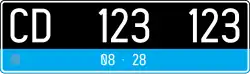 Some foreign countries and international-organization vehicles in Jakarta use the B xxxxx yyy format and a normal white on black plate. Where xxxxx stands for five random digits, and yyy stands for the country or organization code.