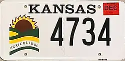 - ^ a b Tanner, Eric N. "Kansas Passenger License Plates". allaboutlicenseplates.com. Retrieved December 4, 2020.
