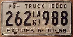 Truck | "TRUCK" embossed at top; weight of vehicle embossed in top right corner. | 1967 | 123456 | |
