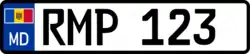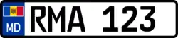 License plates in Moldova were introduced on November 30, 1992. Currently issued plates consist of six black characters on a white background: three letters and three numbers. On the left part of the plates there is a modified, wider than usual blue euroband having the Moldovan flag instead of the EU symbol and the international country code MD underneath it. The plates are 520 mm wide and 112 mm high, made of metal with embossed characters using the FE-Schrift font.[1]