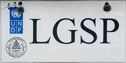 2020 (?) | Large black "LGSP" (Local Government Support Program) on white background skewed to right of center; United Nations Development Program logo over state seal at left; material is plastic | None | Republic of Palau | ||