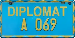 2020 (?) | Golden yellow serial on light blue background; wavy golden yell and light blue border | golden yellow "DIPLOMAT" above serial number | A 123 | Republic of Palau |