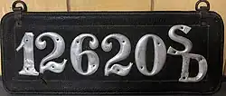 1905 to 1912 (prestate) | Riveted metal numbers on black leather plate, "SD" riveted on right | 12345 | 1 to approximately 13500 |