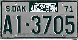 1971 | Embossed green on reflective white with border line; "S.DAK.", stamped Mount Rushmore graphic and "71" at top | none | 1-12345 10-1234 |