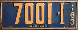 - ^ "Suriname plates information". Matriculasdelmundo.com (in Spanish). Retrieved 2 Mar 2023.