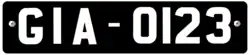 52 cm x 11 cm Black on White Gambian Flag as well as the text GPF on the left side of the license plate |
