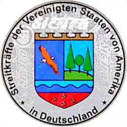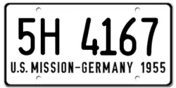 Their plates carried the NATO insignia on a blue background instead of the EU stars, the USA country code, and registration numbers starting with AD, AF or HK, while numbers starting in IF on similar plates were used for official NATO vehicles of all non-German nationalities.[1]
