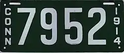 In 1914 Arizona and California joined the list of states and territories providing license plates to vehicle owners, and no new states entered the prestate era. There were now 37 states and 3 territories that were issuing license plates and 7 other states requiring owners to provide their own license plates.[1][2][3][4]