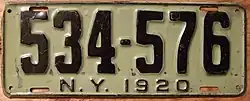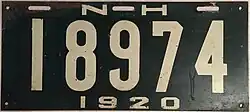 Each of the 48 states of the United States of America plus several of its territories and the District of Columbia issued individual passenger license plates for 1920.[1][2][3][4]