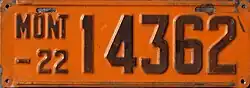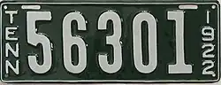 Vehicle registration plates of the United States for 1922