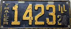Illinois | Trailer | Embossed yellow serial on black plate with border line; stylized "ILL" at top right, "24" at bottom right; vertical stacked "TRAILER" at left | 1234 | 1 to 1791 | First year of issue for Illinois trailer plates |