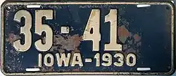 Many of the 48 states of the United States of America plus several of its territories and the District of Columbia issued individual passenger license plates for the year 1930.[1][2][3][4]