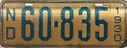North Dakota | Embossed navy lettering on orange base. "ND" embossed at left and "30" embossed at right. | "none" | 12-345 | ||