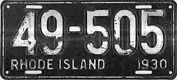 Rhode Island | Embossed white lettering and rims on black base. "RHODE ISLAND 1930" at bottom. | "none" | |||