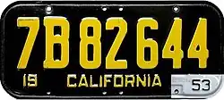 Each of the 48 states of the United States of America plus several of its territories and the District of Columbia issued individual passenger license plates for 1953.[1][2][3][4]