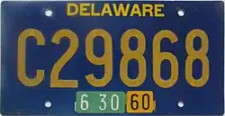 Each of the fifty states of the US plus many of its territories and the District of Columbia issued license plates for registered vehicles for the calendar year 1960.[1][2][3][4]