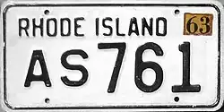 Rhode Island | Jet-black lettering embossed on white base | None | AB123 | Undated base plate renewed with stickers for 1963 | |