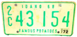 Coded by month of expiration (A) | Revalidated for 1972 with black on red stickers. |