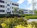 Once a village and a suburb, Vejlby has now completely merged with the city of Aarhus, but can still present areas characterised by the old village around the old church and graveyard. Modern buildings of note, are the shopping mall of Veri Center, the dormitory of Børglum Kollegiet with its notable architecture, a nursing and retirement centre, the large sports complex of Vejlby-Risskov Idrætscenter, the large residential areas of Veriparken, Næringen & Nyringen and Kantorparken. Important educational buildings comprise the Risskov Gymnasium (STX) and Handelsgymnasiet Vejlby (HHX). The only notable green area in Vejlby is Mollerup Skov.