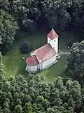 The parochial church is located in the forest at the end of the village. Its murals of late Árpád-age was painted by Aquila János. It was destroyed by fire in the late 19th century. Earlier it was measured and described by Rómer Flóris, member of the Hungarian Academy of Science. The artist also painted Nagytótlak rotunda in this region.