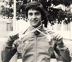 Venanzio Ortis with the two medal won at the 1978 European Championships