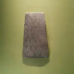A hoard of prehistoric objects, including two trapezoid-shaped plaques with geometric designs, was found underneath a hill by labourers in the mid nineteenth century during the construction of the railway line between Vendas Novas and Beja. They are since 1862 kept at the British Museum.[4]