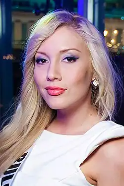 Veneta Krasimirova Krasteva[1][2] (Bulgarian: Венета Красимирова Кръстева; born 23 December 1991) is a Bulgarian model and beauty pageant titleholder who was crowned Miss Universe Bulgaria 2013 and Miss World Bulgaria 2015 and the president of the Miss World Bulgaria Organization. She represented Bulgaria at Miss Universe 2013 and Miss World 2015 and had the distinction of being the first and only Bulgarian to represent Bulgaria at two of the largest and oldest international pageants in the world Miss World and Miss Universe. Veneta is currently the president of the Miss World, Mr. World and Miss Universe Bulgaria Organization.