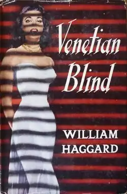 Venetian Blind is a 1959 suspense novel by the British author William Haggard published in England by Cassell and in the United States by Ives Washburn. It was Haggard's second of 21 books involving his urbane protagonist Colonel Charles Russell, the head of the unobtrusive but lethal Security Executive, a government counter-intelligence agency clearly based on the actual MI5 or Security Service, where he moves easily and gracefully along C. P. Snow's Corridors of Power in Whitehall. Like all of Haggard's books it has standard elements of suspense thrillers but in addition there is an almost Henry Jamiesian exposition of British establishment mores and character, in both the government and in the world of upper-class financiers, scientists, industrialists, their families, and hangers-on, making it very much a novel of character.