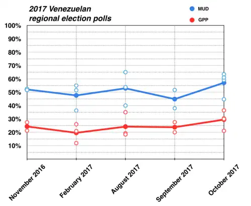 - ^ Flores Riofrio, Jorge (15 October 2017). "La MUD no reconocerá ninguno de los resultados de las elecciones regionales del #15Oct". Efecto Cocuyo (in Spanish). Archived from the original on 16 October 2017. Retrieved 16 October 2017.