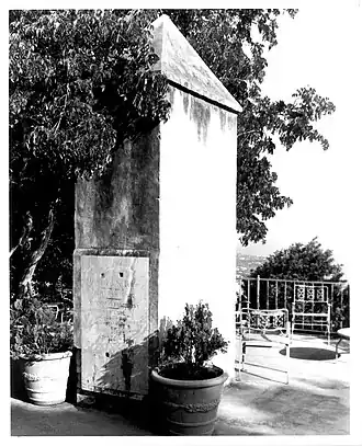 In 1872, a team of astronomers from Brazil began planning an expedition to Saint Thomas to observe the upcoming 1882 transit of Venus, when the planet would pass in front of the Sun. The observatory spot was chosen on a hill on the Estate Mafolie due to its elevation, rising above the city of Charlotte Amalie and allowing an uninterrupted view of the sky. Astronomers that took part in the expedition included Antonio Luis von Hoonholtz, Francisco Calhejros da Graca, and Arthur Indio do Brasil. The results of this expedition were published by the Imperial Observatory of Rio de Janeiro in 1887. During World War I, the hill was used as a gun mount, although no trace of this remains today. Later, an obelisk was constructed to commemorate the site's scientific significance. It is 13.5 feet (4.1 m) tall and built of masonry. The marble tablet that was used as an instrument station during the transit is now used as a plaque, written in Portuguese.[2] For its notability and contribution to the field of astronomy, the site was listed on the National Register of Historic Places in 1978.[1]