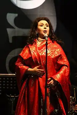 After leaving university, a friend took Villarroel to see opera at the Teatro Cariola. She was hooked, and a few weeks later learned that the chorus was looking for women singers; she auditioned and was given a place.[3] Villarroel's career took off thanks to the soprano Renata Scotto, whom she considers her "musical godmother".[4] Scotto discovered her when they shared the stage of Santiago's Municipal Theatre in May 1986, Villarroel playing Musetta[5] to Scotto's Mimì[1] in Giacomo Puccini's La Bohème.[3]