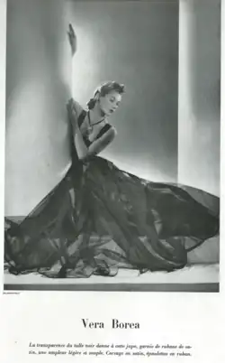 Prestigious fashion magazines featured Vera Borea's creations alongside Hermès, Lanvin, Chanel and Patou.[12] Her designs were copied with those of Vionnet, Schiaparelli,[13] Lanvin and Patou.[14]