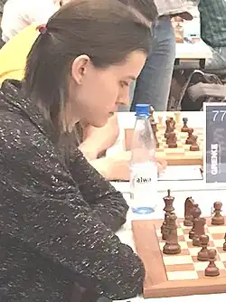 At age seven, Nebolsina won the Russian Girls Under 8 Championship and the World Youth Championship for girls under 10 in Oropesa del Mar at eight years old.[3] By age twelve, she was playing the Russian Women's 1st League and in 2004 she earned the title Woman International Master.[5][6] In 2007, when she was just seventeen, she won the World Junior Championship for Girls (under 20) at Yerevan, which qualified her for the title of Woman Grandmaster.[7][8][1] The highest ranking of her career thus far came in January 2011, when she was ranked #2389 in the world,[8] and her highest junior ranking was #12 among the world's top 20 girl players.[9] Nebolsina describes herself as a positional player who can also be a tactician.[10] In 2016, she won the U.S. Women's Open Chess Championship.[11]