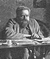 He was born to Rikard Åkerman, a ship's foreman, and his wife Hilda née Hellberg; growing up on their family farm.[1] His childhood was difficult, however, as he had congenital kyphosis, a condition which would require the lifelong use of crutches.[2] His initial studies were with the sculptor, Wilhelm Billqvist, at the Slöjdföreningens skola in Göteborg, from 1883 to 1887, he was a student of Carl August Söderman at the Royal Swedish Academy of Fine Arts in Stockholm. His tiny apartment became a popular gathering place for his fellow students, who enjoyed his singing.