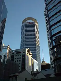 The Vero Centre (constructed as the Royal & SunAlliance Centre)[1] is a skyscraper office tower in Auckland, New Zealand. Constructed in 2000 and designed by architect Peddle Thorp, after its construction it became the tallest building in New Zealand surpassing The Metropolis.[1] The centre contains a health club and gymnasium, main entry public foyer, retail outlets in the 5 podium levels, and 32 office levels. It was New Zealand's tallest office tower until June 2019 when the Commercial Bay Commercial Bay (skyscraper) PwC Tower was topped out. It is also known for its 'halo' roof feature.[1]