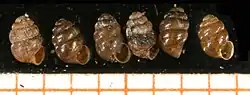| Six shells of Vertigo geyeri, scale bar in mm | |