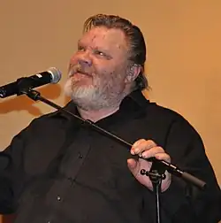 As a singer, Vesa-Matti Loiri is known for interpreting Finnish schlager music and songs set to the poems of Eino Leino.[34] His repertoire also includes humorous songs, folk-style interpretations of Finnish rock classics, and Christmas carols. Loiri's first single, released in 1968, was the humorous "Saiskos pluvan?," followed by around 40 singles, the last being "Eilen kun mä tiennyt en" (2016), a duet with Paula Koivuniemi.[95][96] In the 2000s, Loiri slowed his work pace due to health issues, and music took precedence over films in his career.[40]