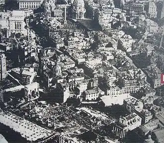 The last building block was demolished in 1933; the works were delayed due to the legal affairs resulting from the discovery of a large quantity of coins and jewels, the so-called treasure of via Alessandrina (now in the Capitoline Museums), found on 22 February of that year in a wall of an apartment at number 101 of the street and belonged to Francesco Martinetti, a well-known antiquarian who died about forty years earlier.[2]